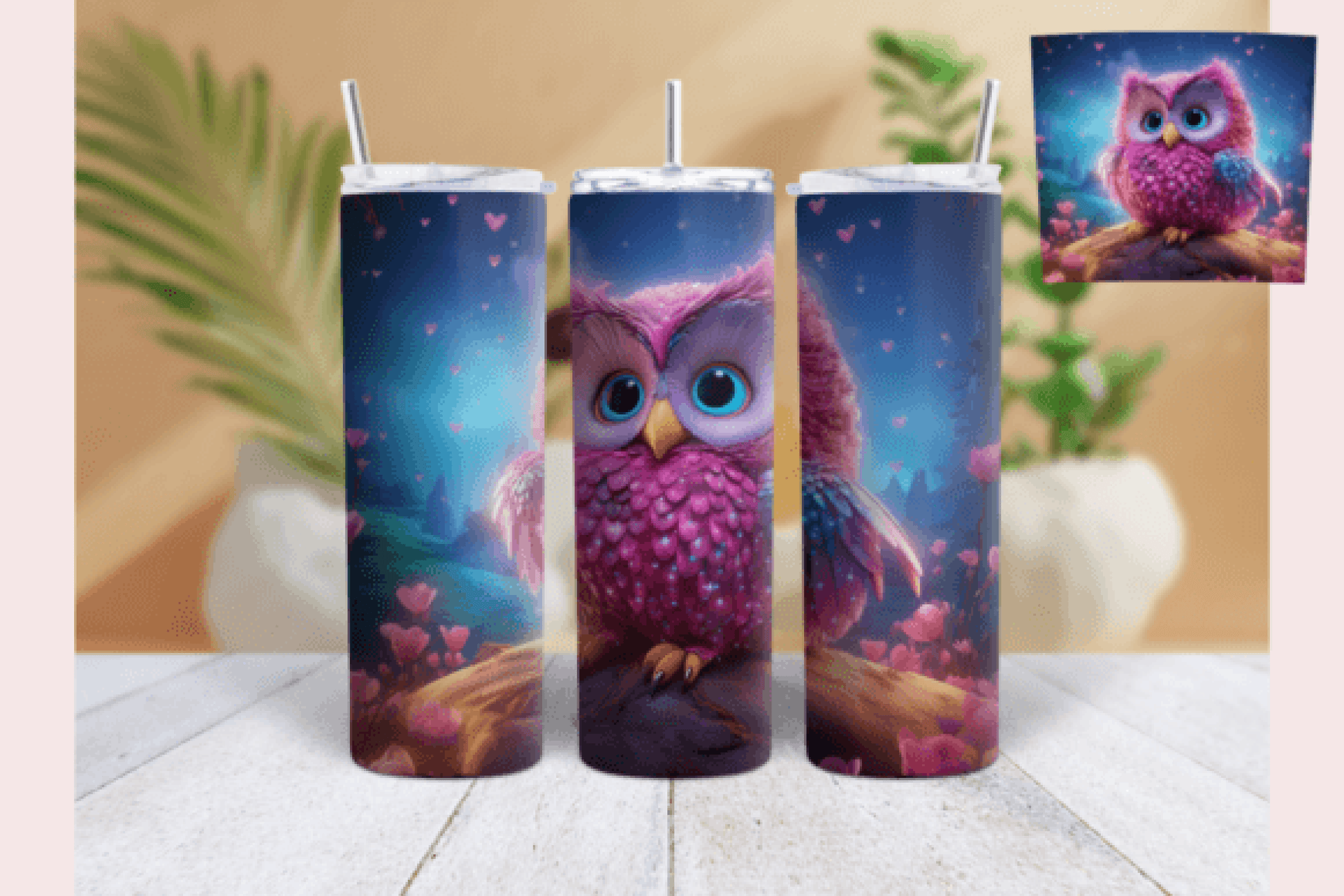 Illuminate your style with the Neon Owl Tumbler Wrap 20oz Design, featuring vibrant neon colors and a captivating owl motif, perfect for adding a touch of whimsy to your drinkware collection.