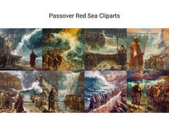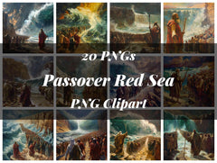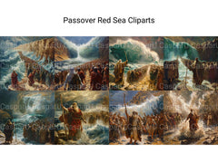 Relive the miracle with this Passover Red Sea Clipart set, showcasing dramatic designs, ideal for faith-based crafts.