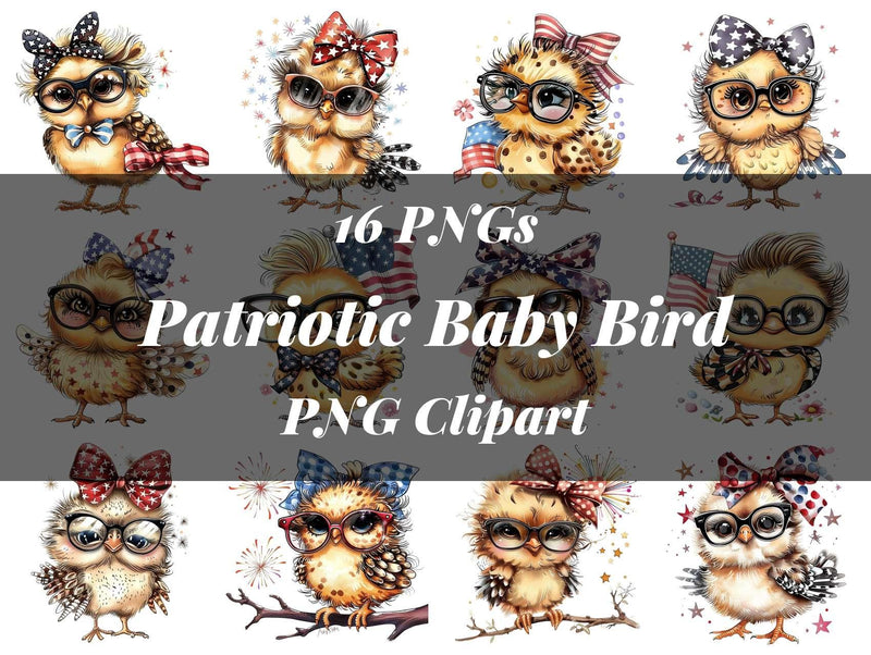 Salute the day with this Patriotic Baby Bird Clipart bundle, featuring cute patriotic birds, ideal for 4th of July projects.