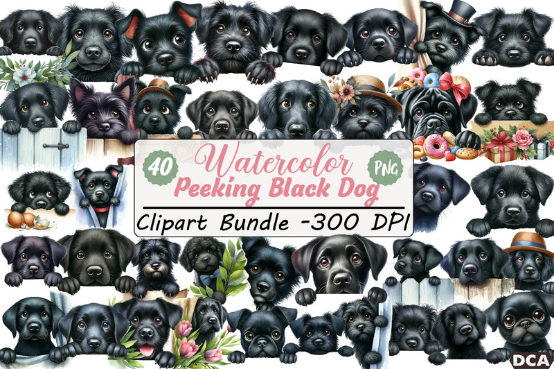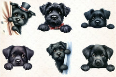 Peeking Black Dog Clipart Bundle