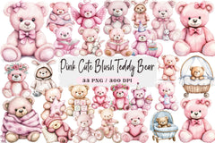 Discover the charm of our Pink Cute Blush Teddy Bear Clipart Bundle, perfect for adding a touch of whimsy to your creative projects. This delightful collection features adorable teddy bear designs, ideal for nursery decor, baby shower invitations, and playful scrapbooking. Unleash your creativity with these high-quality, versatile cliparts that bring a sweet, cuddly vibe to any craft. Perfect for digital and print projects, this bundle is a must-have for anyone looking to add a cute, blush pink aesthetic to their work. Elevate your designs with these enchanting teddy bear illustrations today!