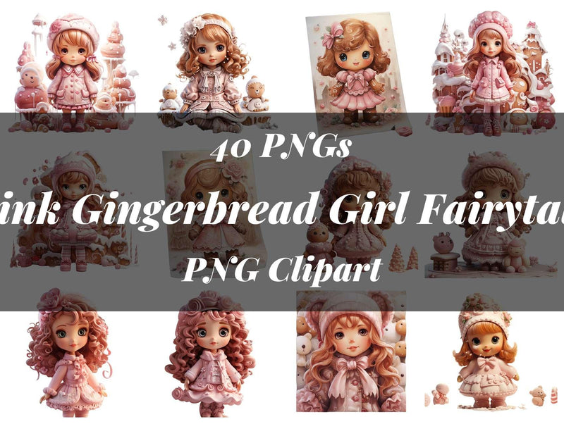 Step into a story with this Pink Gingerbread Girl Clipart set, featuring adorable pink designs, ideal for whimsical crafts.
