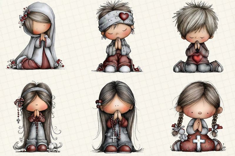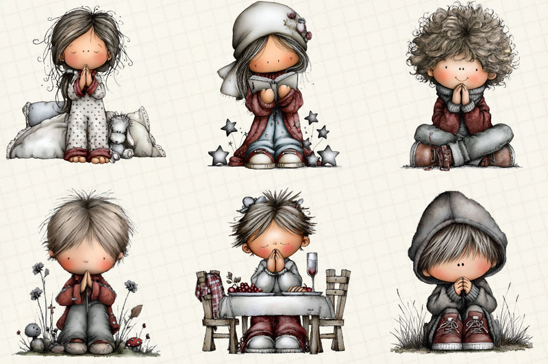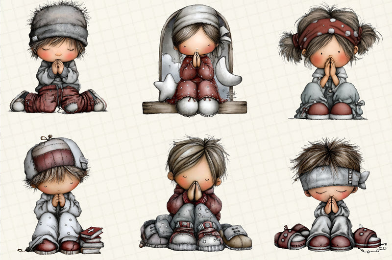 Praying Kids Clipart Bundle