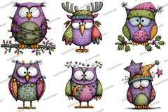 Quirky Funny Christmas Owl Clipart Bundle