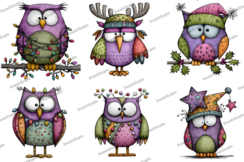 Unleash holiday cheer with our Quirky Funny Christmas Owl Clipart Bundle, featuring whimsical owl designs perfect for festive crafts and unique holiday projects. Ideal for adding a touch of humor to your Christmas cards, gift tags, and decorations, these charming owl illustrations bring joy and creativity to your seasonal creations. Dive into a world of fun and laughter with this delightful clipart collection, designed to make your holiday crafts stand out.