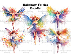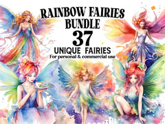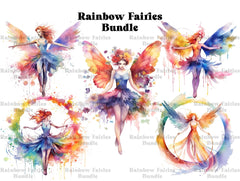 Revel in a spectrum of color with our Rainbow Fairies clip art. These vibrant digital illustrations depict fairies adorned with rainbow wings, dancing among colorful clouds and rainbows, spreading joy and positivity wherever they go, perfect for adding a burst of color and happiness to your creative projects.