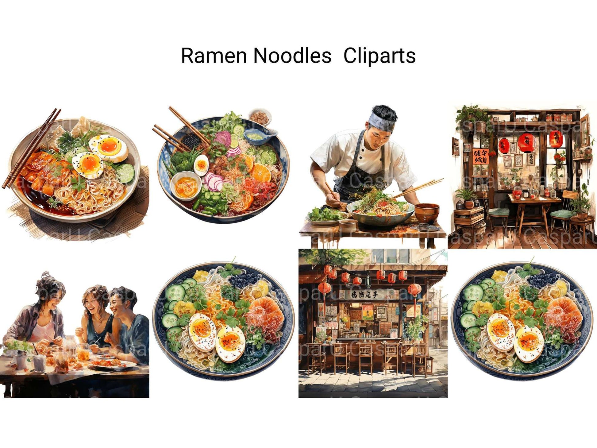 Dive into flavor with this Ramen Noodles Clipart set, featuring tasty noodle designs, ideal for foodie projects.