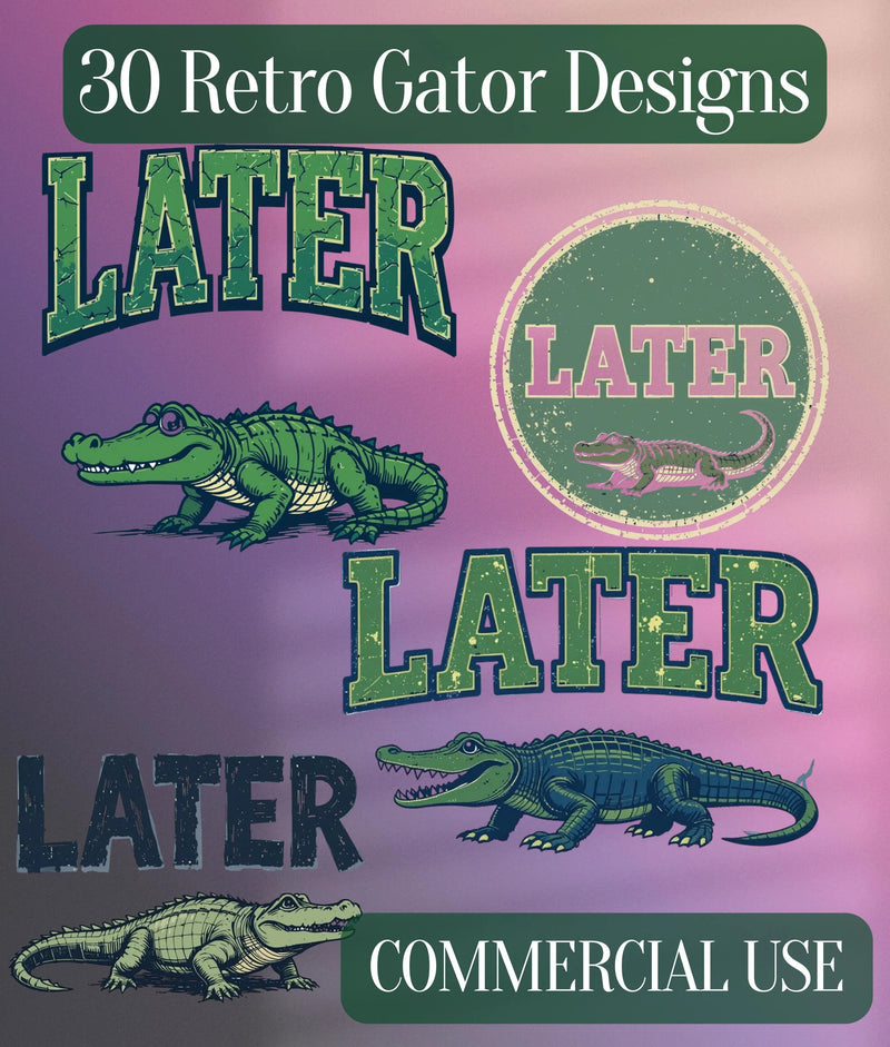 Unleash creativity with the Retro Alligator SVG Clipart Bundle, featuring vintage alligator designs perfect for unique crafting projects. Ideal for retro-themed decor, personalized gifts, and digital artwork, this bundle offers endless possibilities for DIY enthusiasts and designers. Dive into nostalgia and elevate your crafts with these charming alligator illustrations.