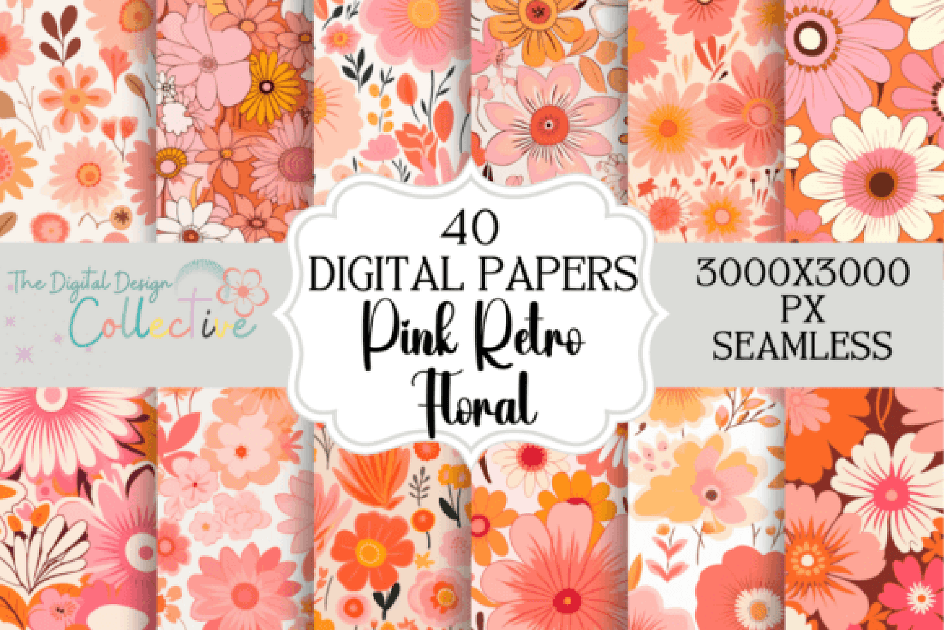 Retro Groovy Pink Flowers Seamless Digital Paper