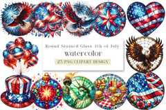 Celebrate Independence Day with our Round Stained Glass 4th of July Clipart Bundle. Perfect for adding a patriotic touch to your crafts, this collection features vibrant, intricate designs that capture the spirit of freedom. Ideal for DIY projects, digital scrapbooking, and festive decorations, these high-quality clipart images are a must-have for any creative enthusiast. Transform your projects with unique, eye-catching stained glass effects that stand out. Download now and let your creativity shine this 4th of July!