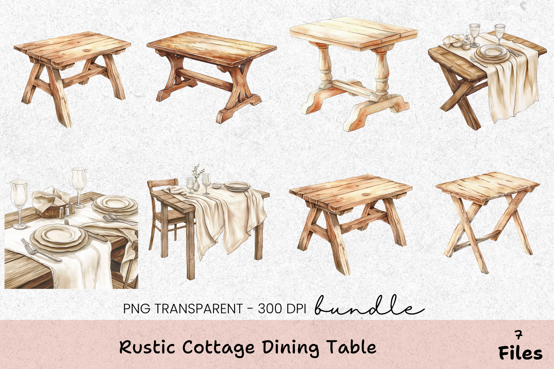 Rustic Cottage Dining Table Clipart Bundle