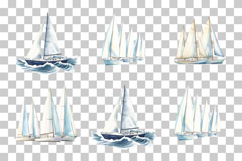Sailboat Regatta Nautical Scene Clipart Bundle