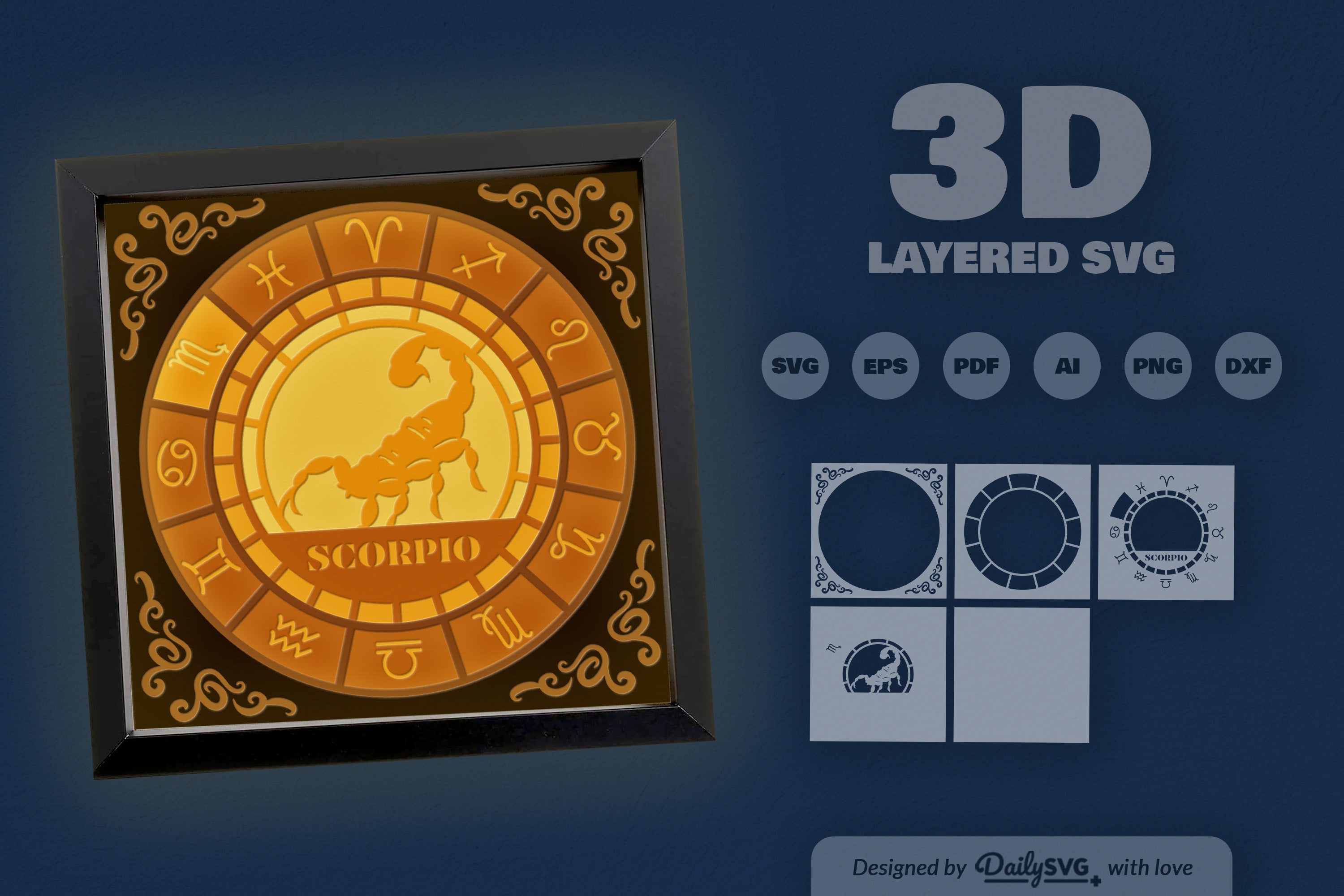 Unveil the mystique of the cosmos with the Scorpio Zodiac 3D Shadow Box Papercut SVG Bundle. Perfect for astrology enthusiasts, this intricate design captures the essence of Scorpio, making it ideal for personalized gifts, home decor, and unique craft projects. Elevate your creative endeavors with this captivating papercut masterpiece.
