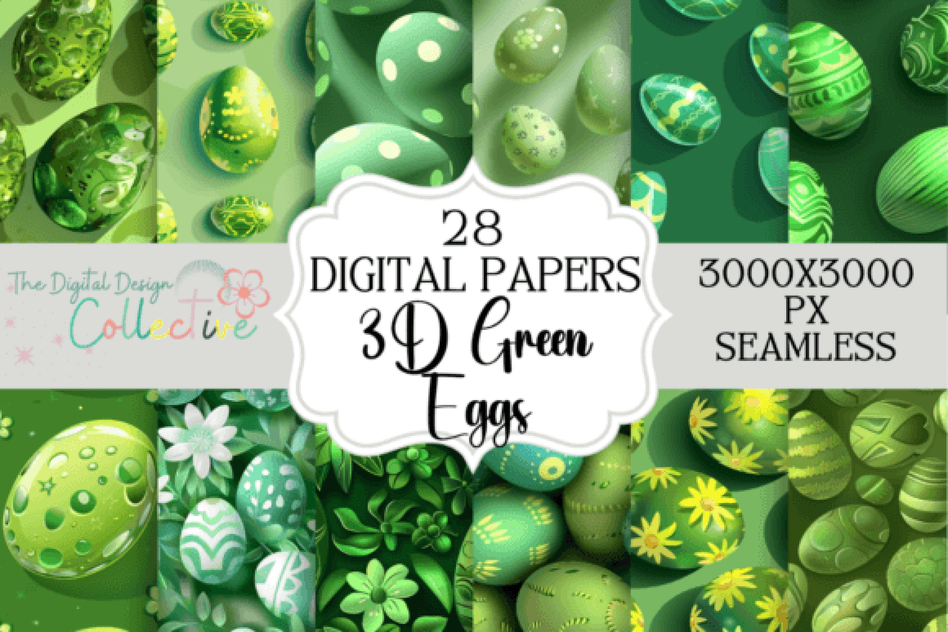 Enhance your Easter crafts with our Seamless 3D Green Easter Egg Patterns Collection, featuring vibrant, intricate designs perfect for festive decorations and digital projects.