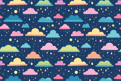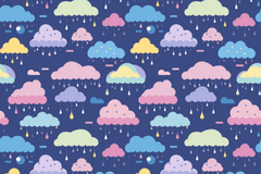Seamless Pastel Rain Clouds Pattern Digital Paper
