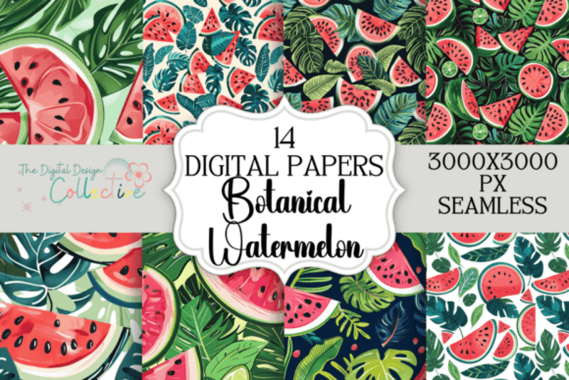 Enhance your creative projects with our Seamless Watermelon Pattern Bundle, featuring vibrant and juicy designs perfect for summer-themed crafts, digital artwork, and more.