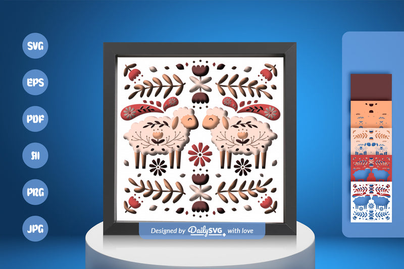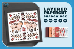 Discover the charm of the Sheep and Flowers Folk Art Papercut SVG Bundle, featuring intricate sheep and floral designs perfect for rustic home decor and creative papercraft projects.