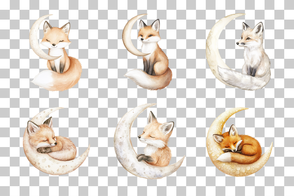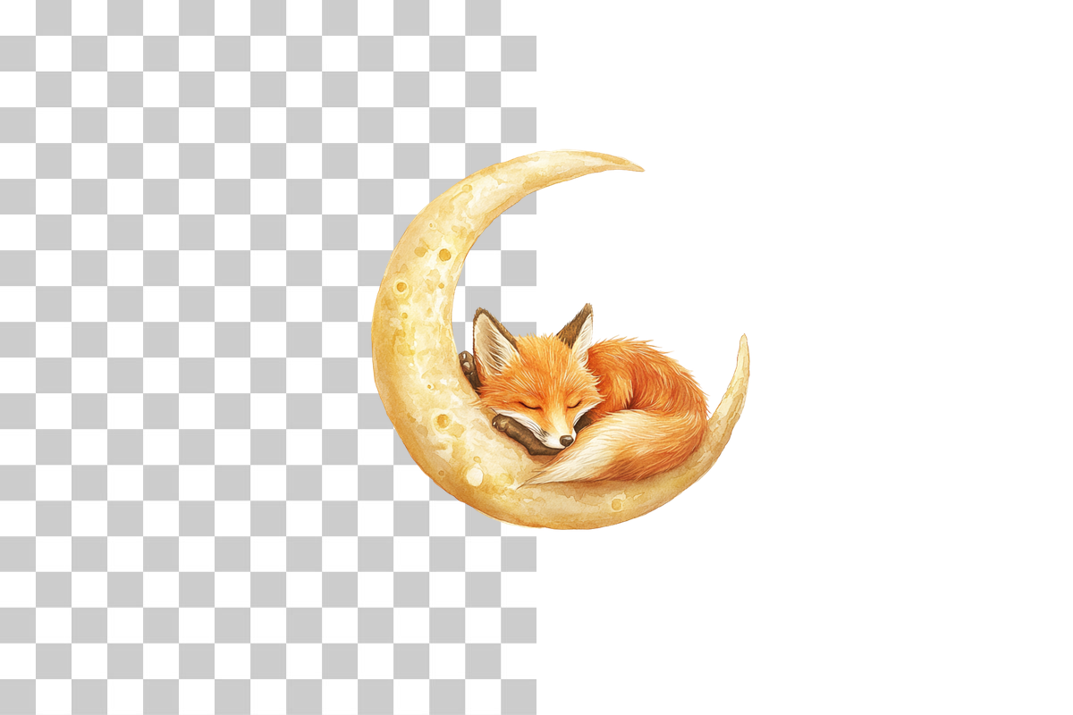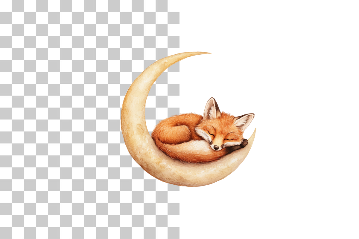 Sleeping Fox on Crescent Moon Clipart Bundle