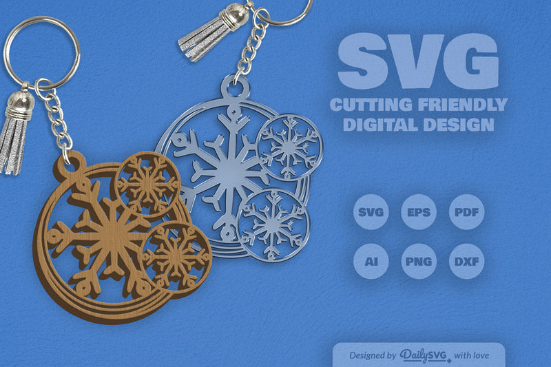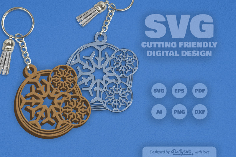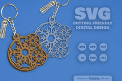 Enhance your creative projects with the Snowflake Keychain Clipart - Daily SVG Bundle, featuring intricate snowflake designs perfect for winter-themed crafts and personalized keychains.