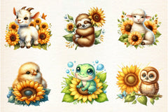 Brighten your projects with the Spring Animal Sunflowers Clipart Bundle, featuring charming animal and sunflower designs perfect for seasonal crafts and digital creations.