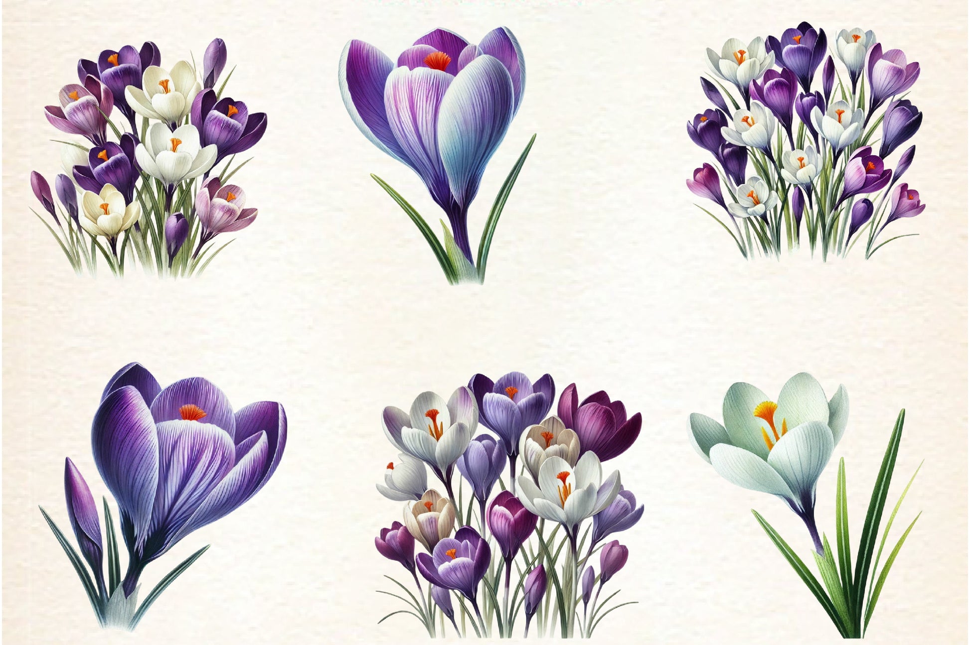 Enhance your creative projects with our Spring Crocus Flower Clipart Bundle, featuring vibrant and detailed floral designs perfect for spring-themed crafts, invitations, and digital art. Ideal for artists and crafters seeking high-quality, versatile clipart to bring a touch of nature's beauty to their work.