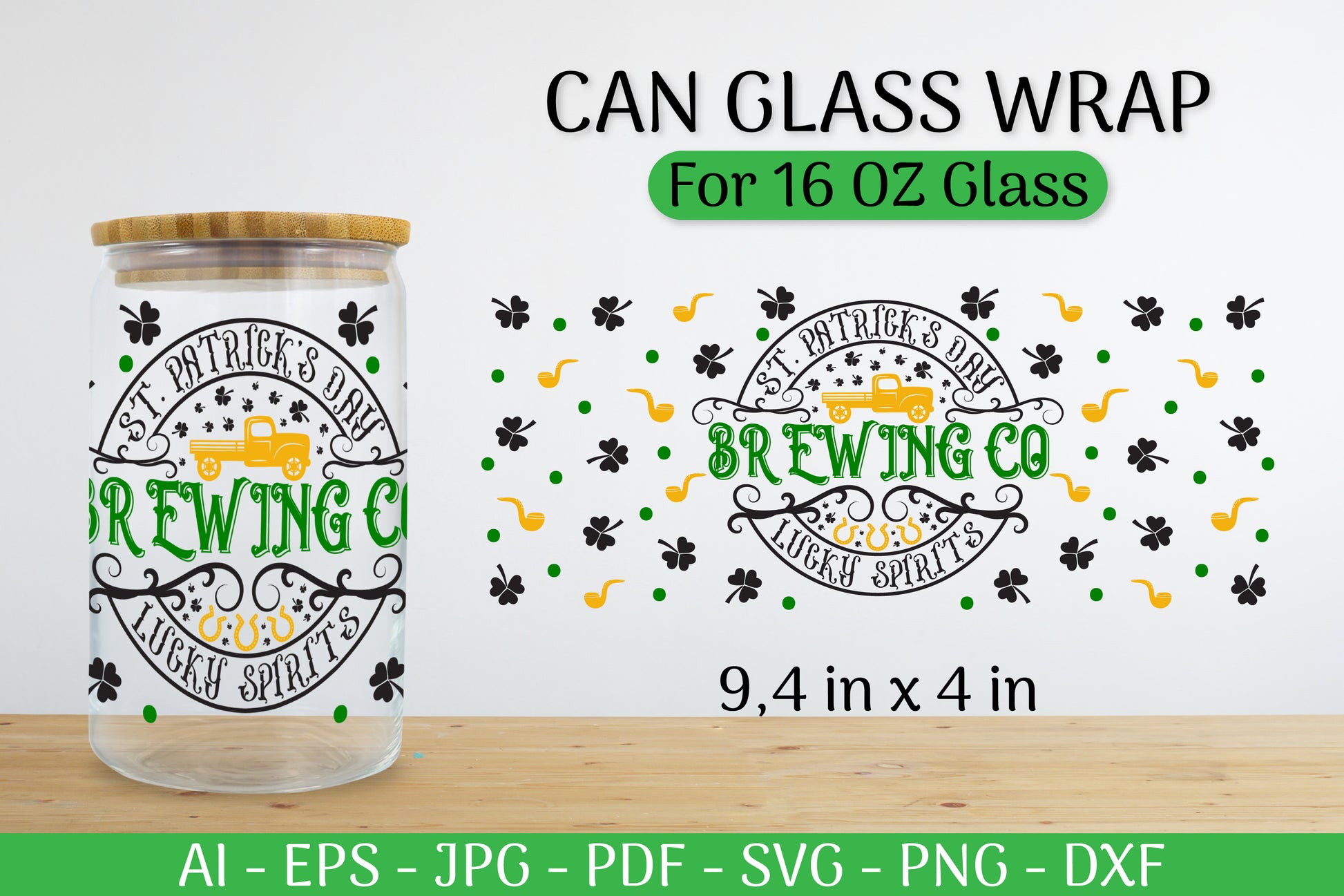 Celebrate in style with our St. Patrick's Day Can Glass Wrap SVG Bundle. Perfect for crafting unique, festive drinkware, this bundle features charming Irish-themed designs. Ideal for DIY enthusiasts looking to add a touch of luck to their St. Patrick's Day celebrations.