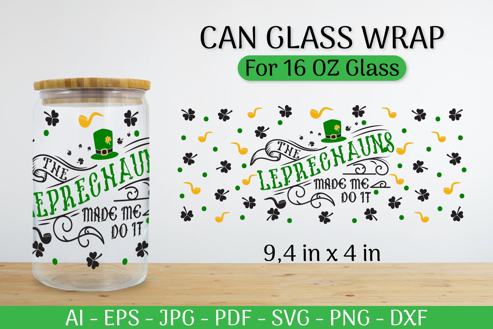 Celebrate in style with our St. Patrick's Day Can Glass Wrap SVG Bundle. Perfect for crafting unique, festive glass wraps, this bundle features charming Irish-themed designs. Ideal for DIY enthusiasts looking to add a touch of luck to their St. Patrick's Day celebrations.