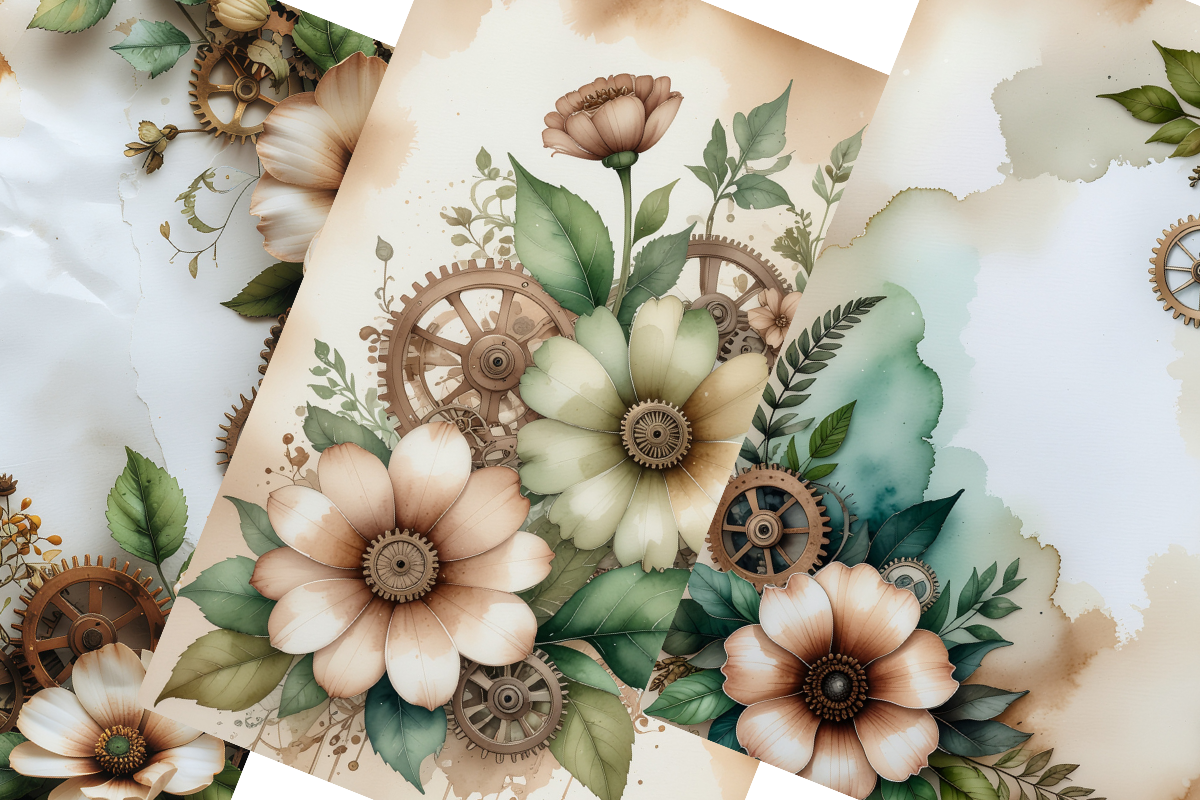 Transform your art projects with our Steampunk Botanical Junk Journal Papers, designed for artists and crafters who appreciate the beauty of nature and the allure of the industrial age.