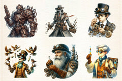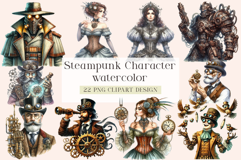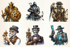 Unleash creativity with our Steampunk Character Clipart Bundle, featuring unique and intricate designs perfect for vintage-inspired projects. Ideal for digital scrapbooking, DIY crafts, and personalized gifts, these high-quality illustrations bring a touch of whimsy and elegance to any creation. Dive into the world of gears, goggles, and Victorian charm with this versatile collection, perfect for artists, designers, and steampunk enthusiasts alike.