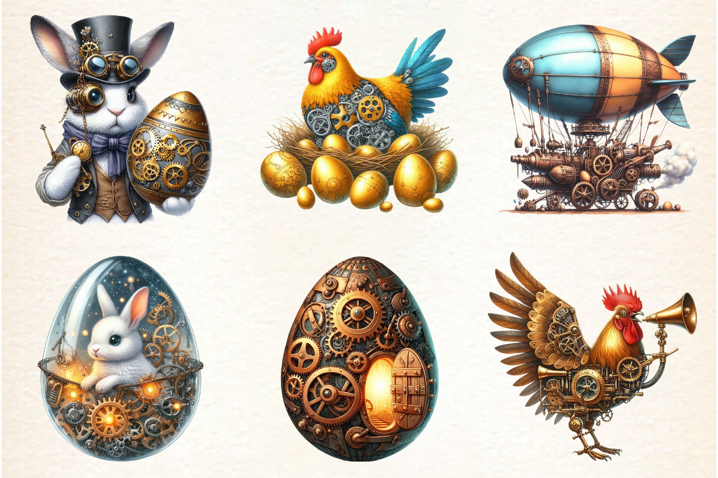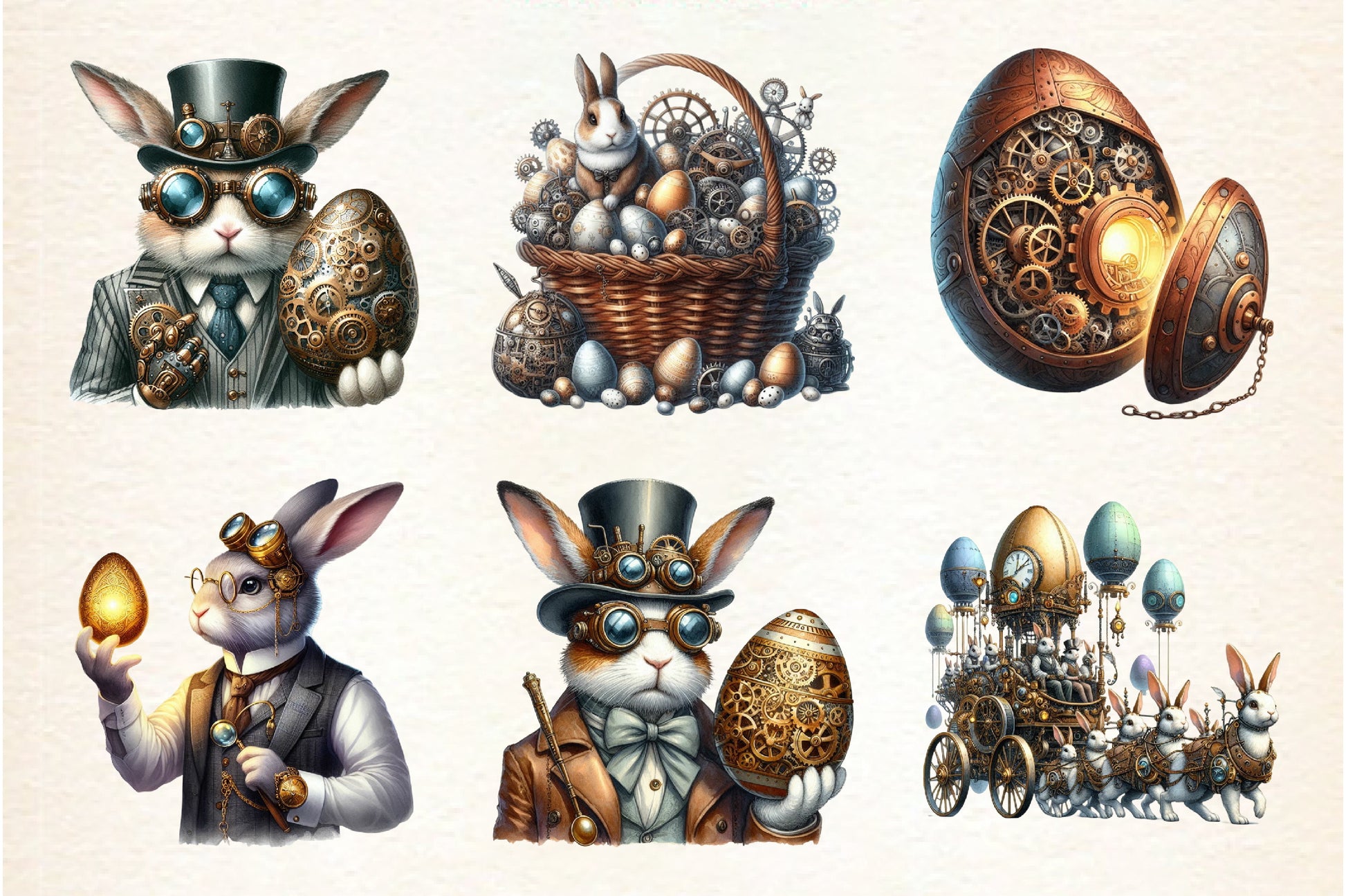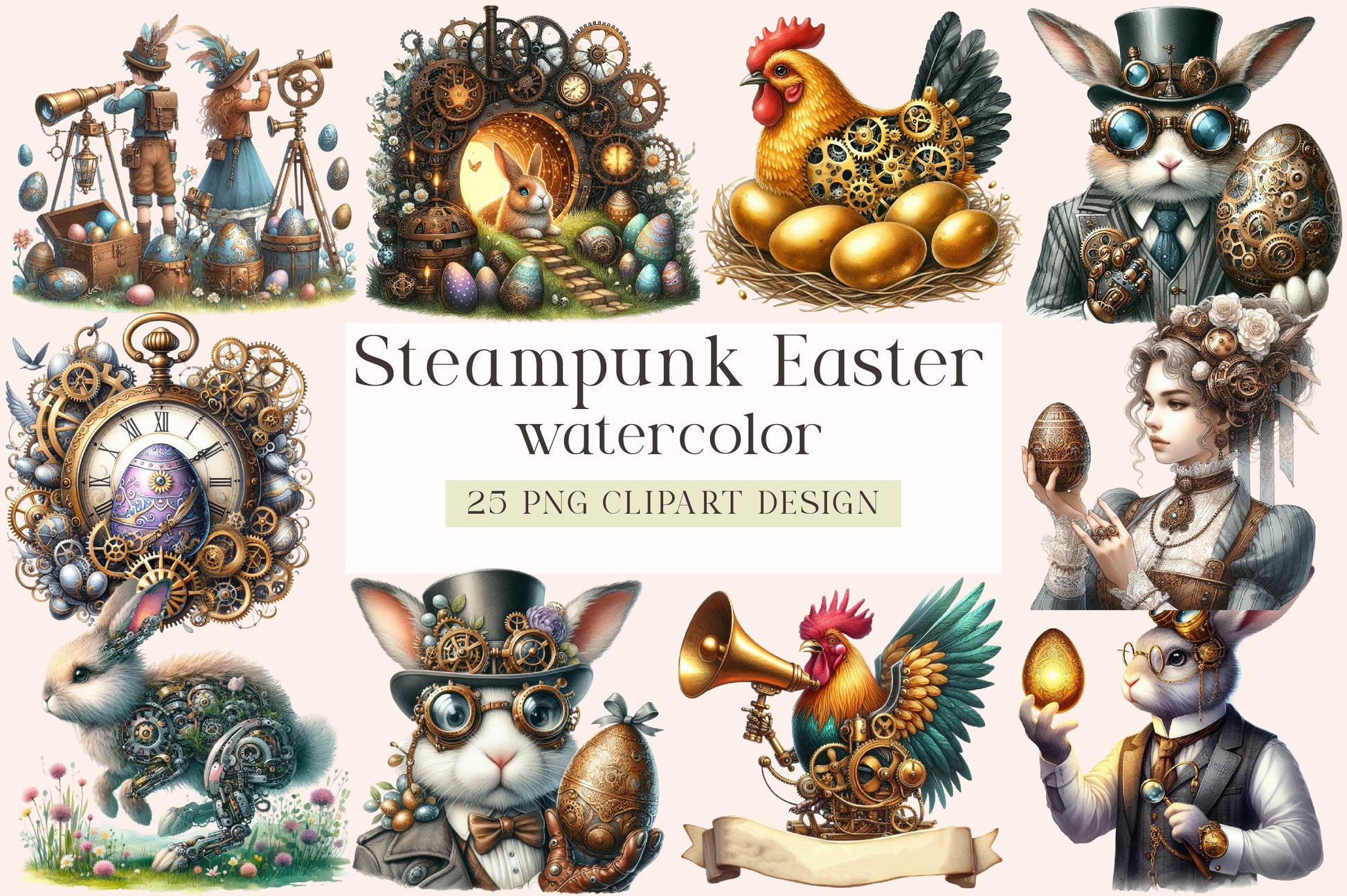 Unleash creativity with our Steampunk Easter Clipart Bundle, featuring unique vintage designs perfect for whimsical holiday projects. Ideal for DIY crafts, invitations, and digital scrapbooking, this collection brings a touch of retro charm to your Easter celebrations. Explore intricate gears, bunnies, and eggs, all with a steampunk twist, to elevate your creative endeavors. Perfect for artists, crafters, and designers seeking a distinctive edge.