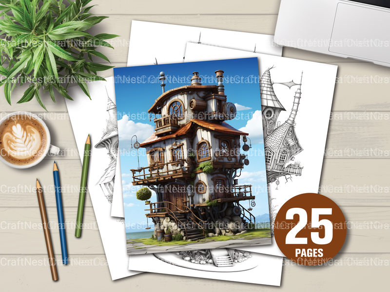 Unleash your creativity with the Steampunk Fairy House Coloring Book, featuring intricate steampunk-inspired fairy house designs, perfect for fantasy art enthusiasts and unique craft projects.
