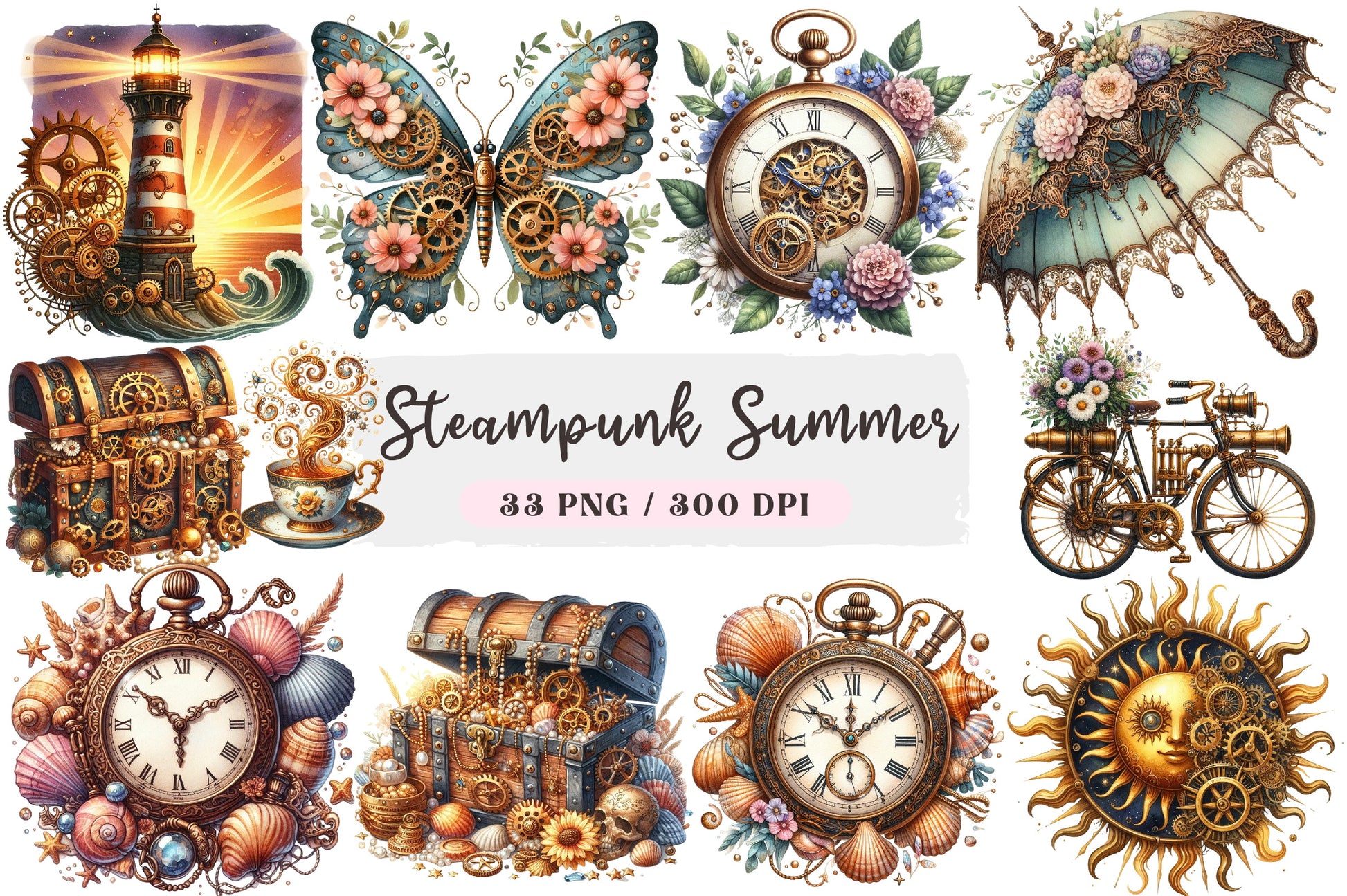 Steampunk Summer Clipart Bundle