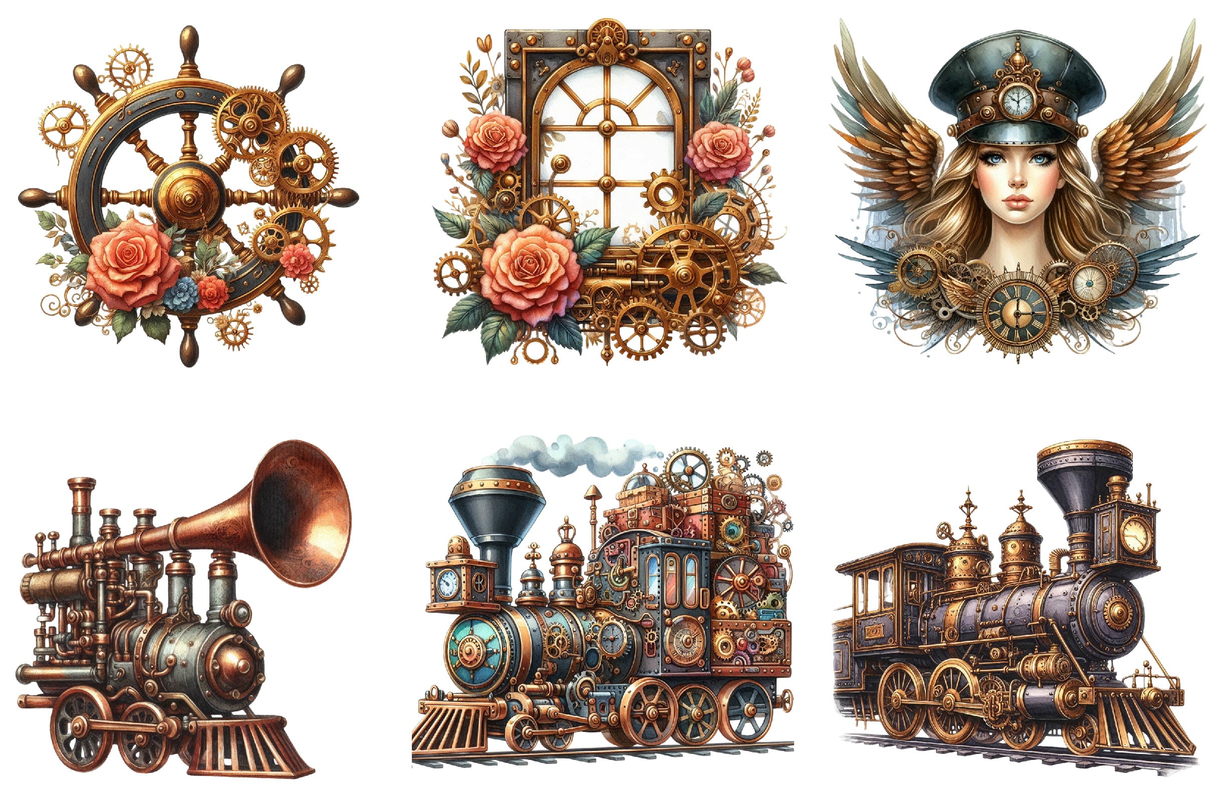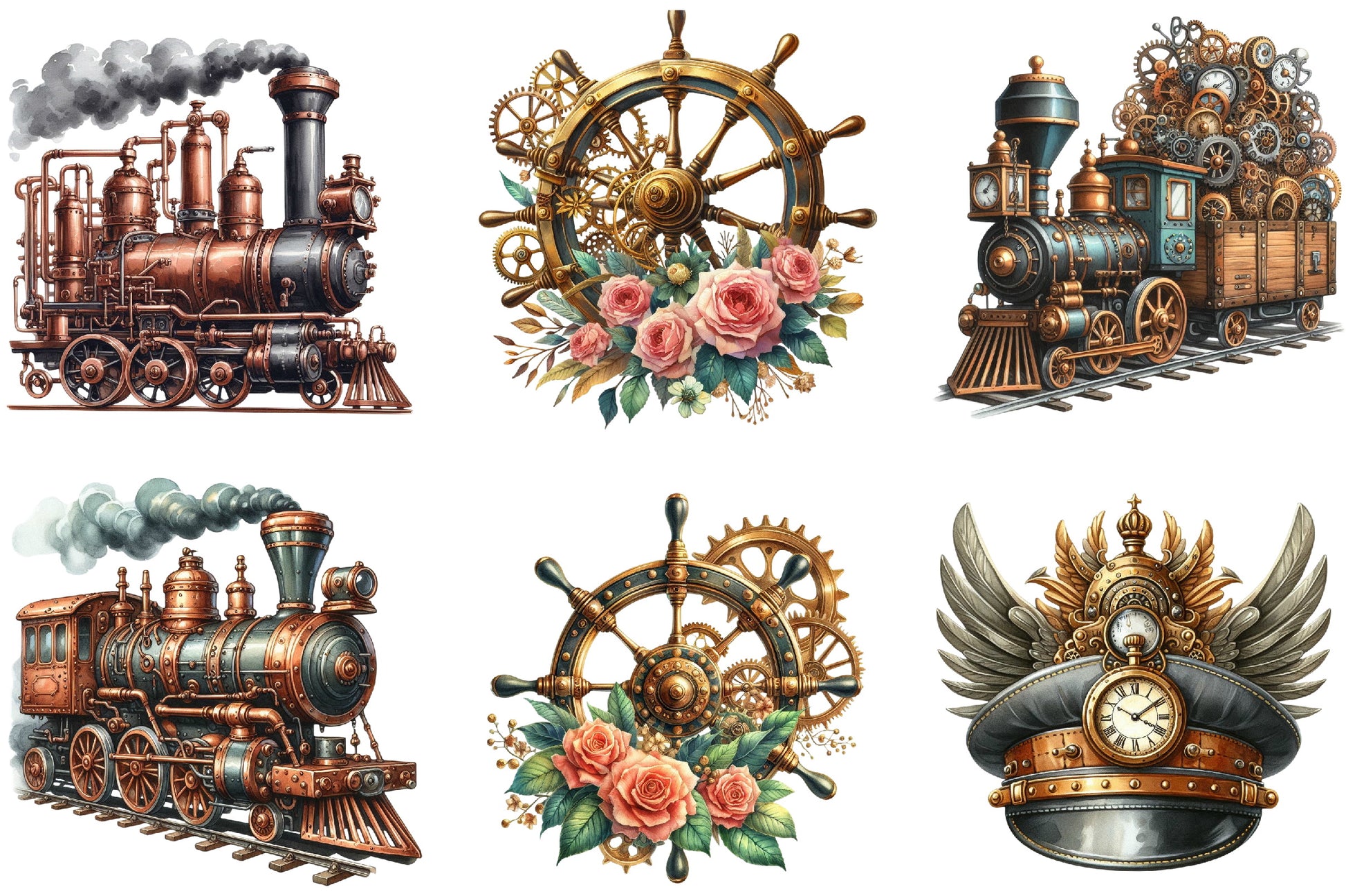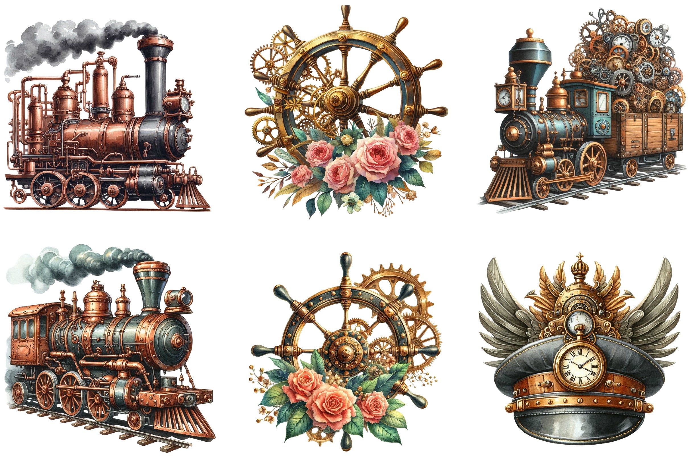 Steampunk Trains Vector Clipart Bundle
