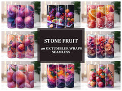Enjoy the luscious beauty of summer with our stone fruit seamless tumbler wrap. Featuring a medley of peaches, plums, and cherries, this design brings a vibrant and juicy touch to your drinkware. Perfect for a fresh, fruity aesthetic.