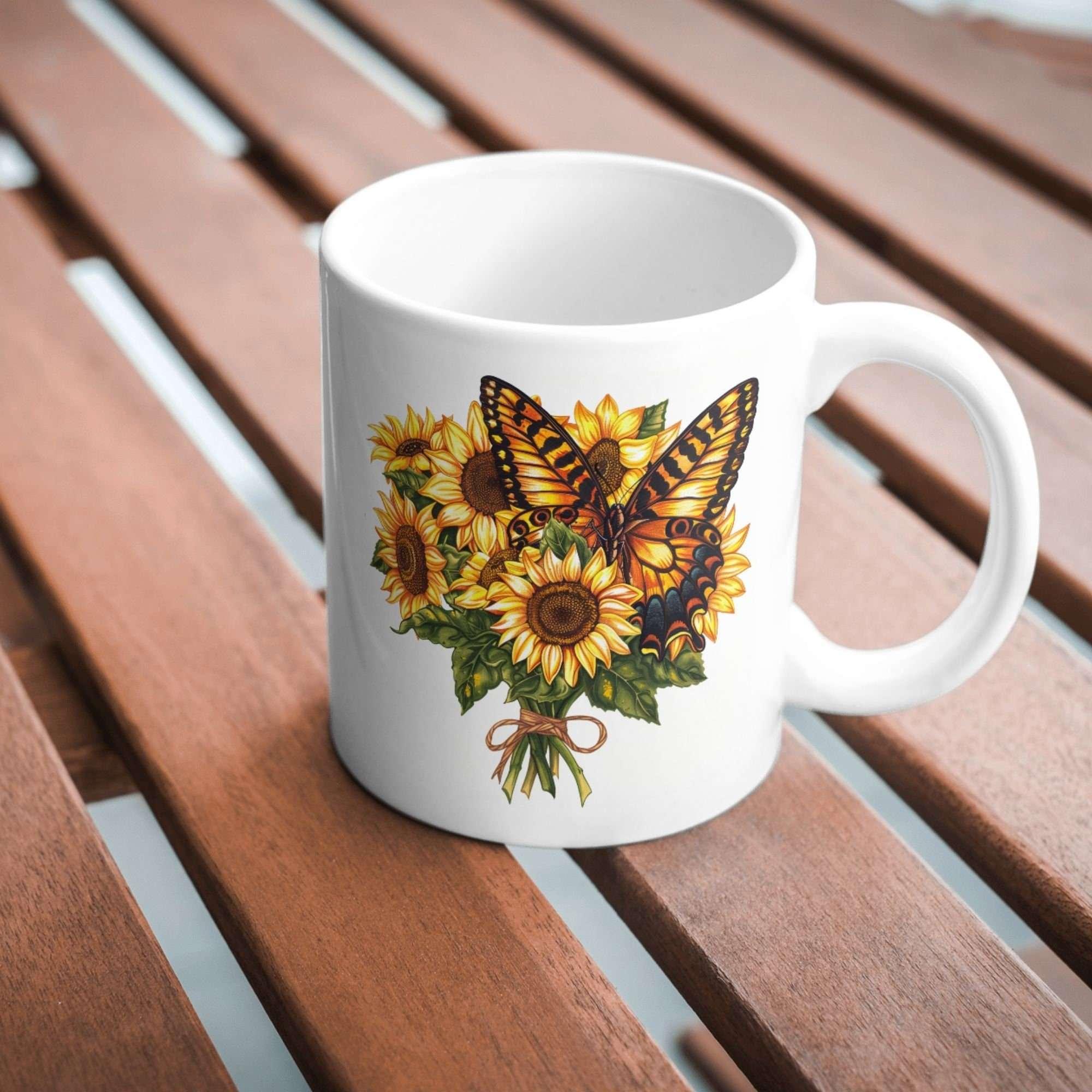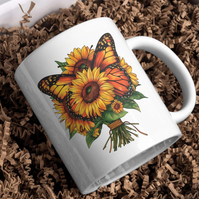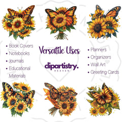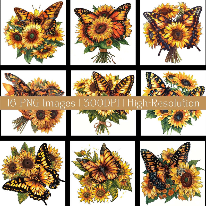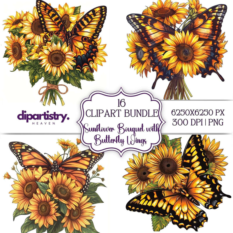 Fly with flowers using this Sunflower Bouquet with Butterfly Wings Clipart set, featuring unique designs, ideal for nature crafts.