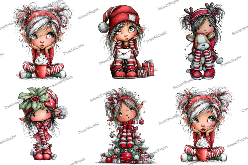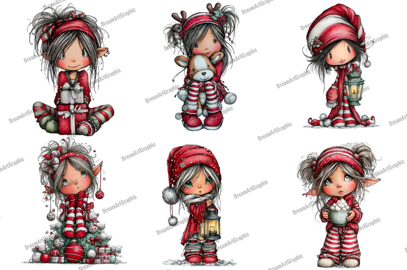 Sweet Christmas Elf Girl Clipart Bundle