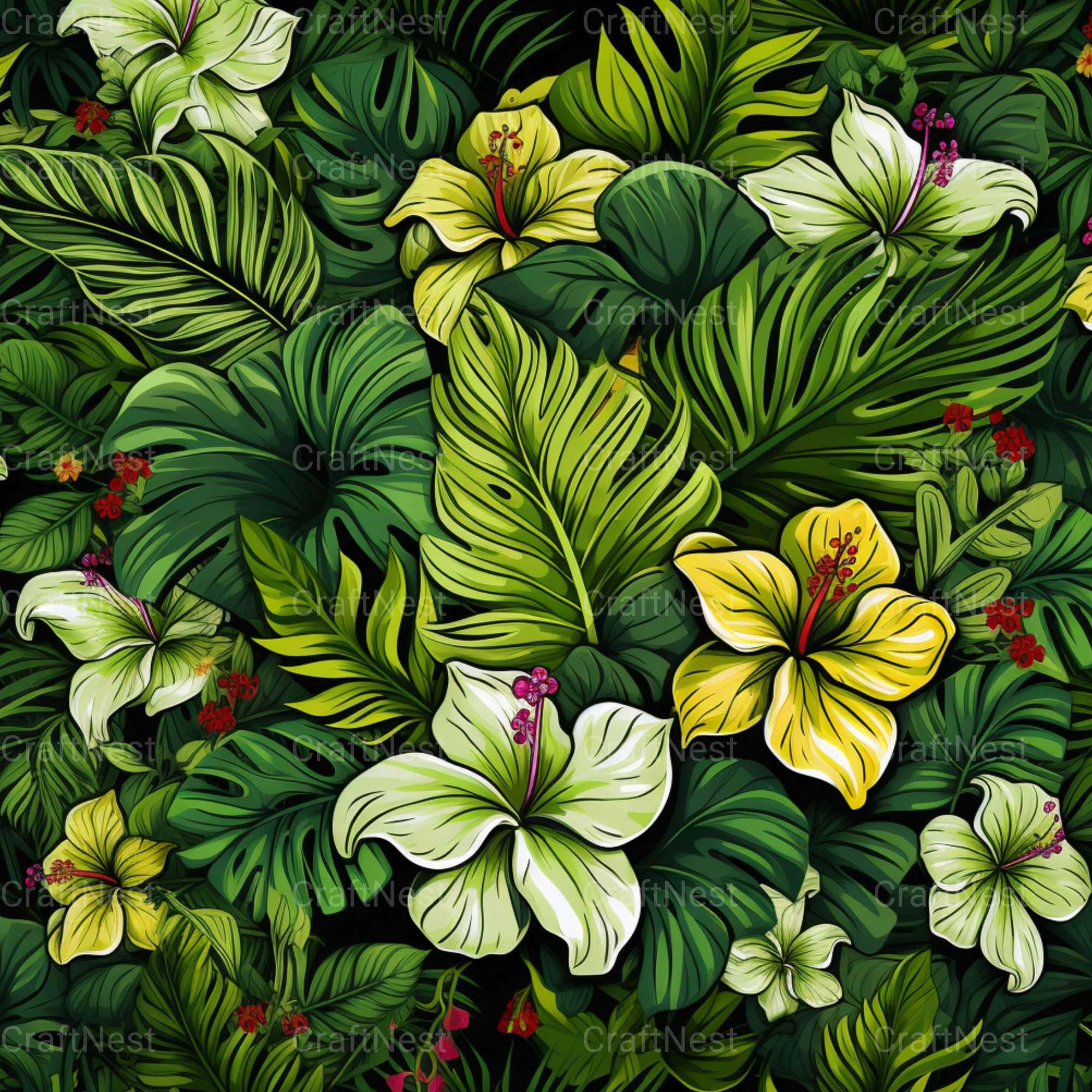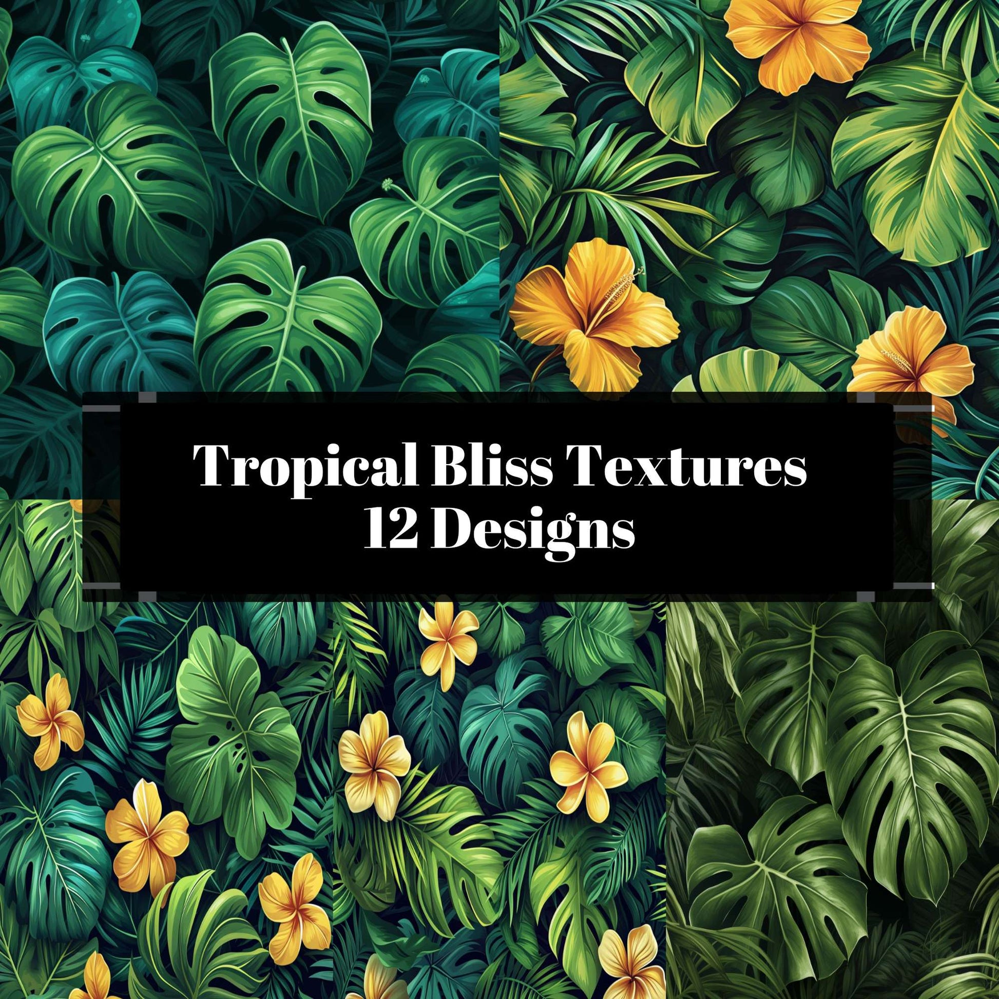 Escape with this Tropical Bliss Textures set, featuring lush tropical patterns, perfect for summer designs.