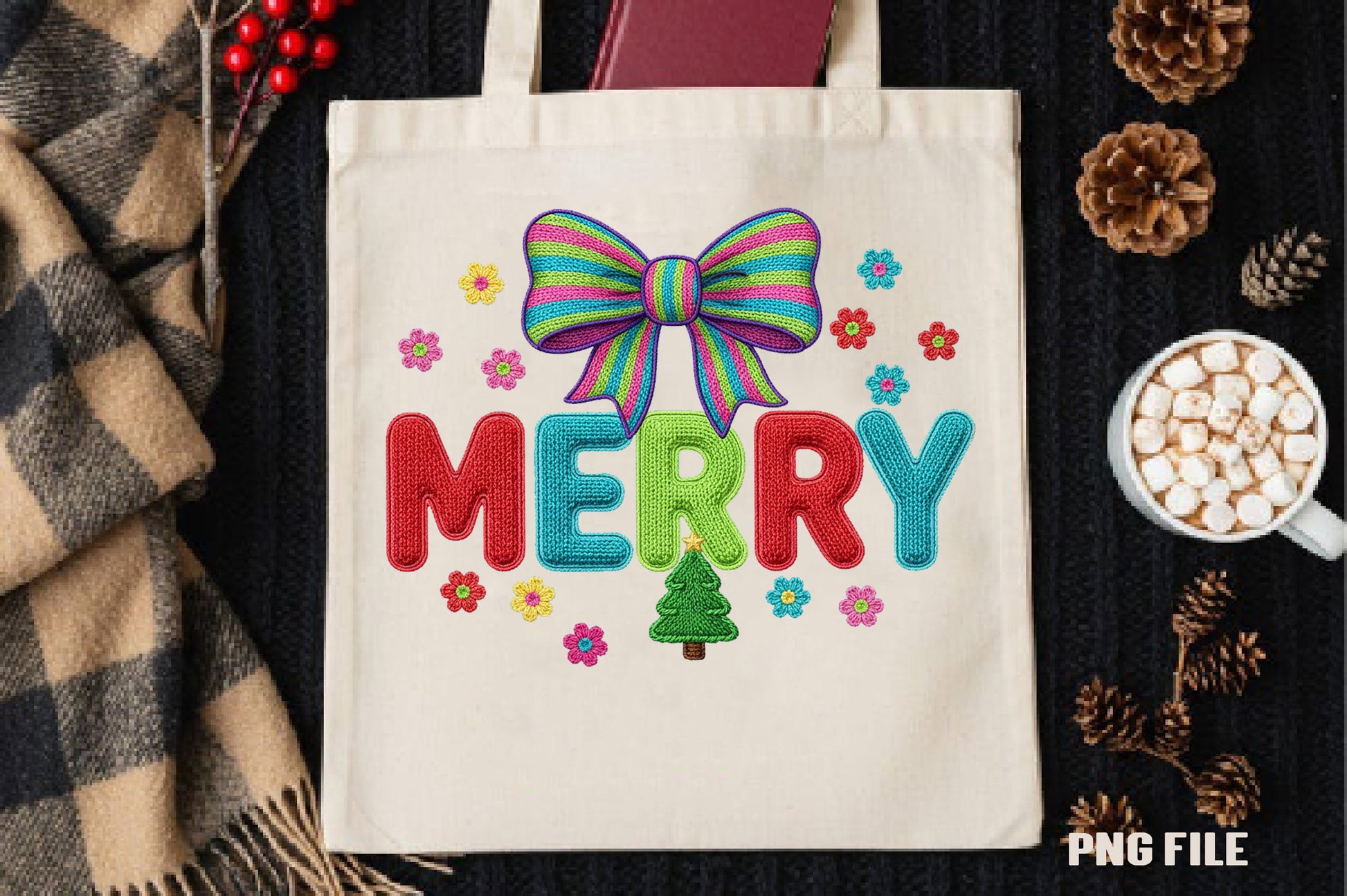 Tufted Embroidery Ribbon Bow Merry Clipart Bundle