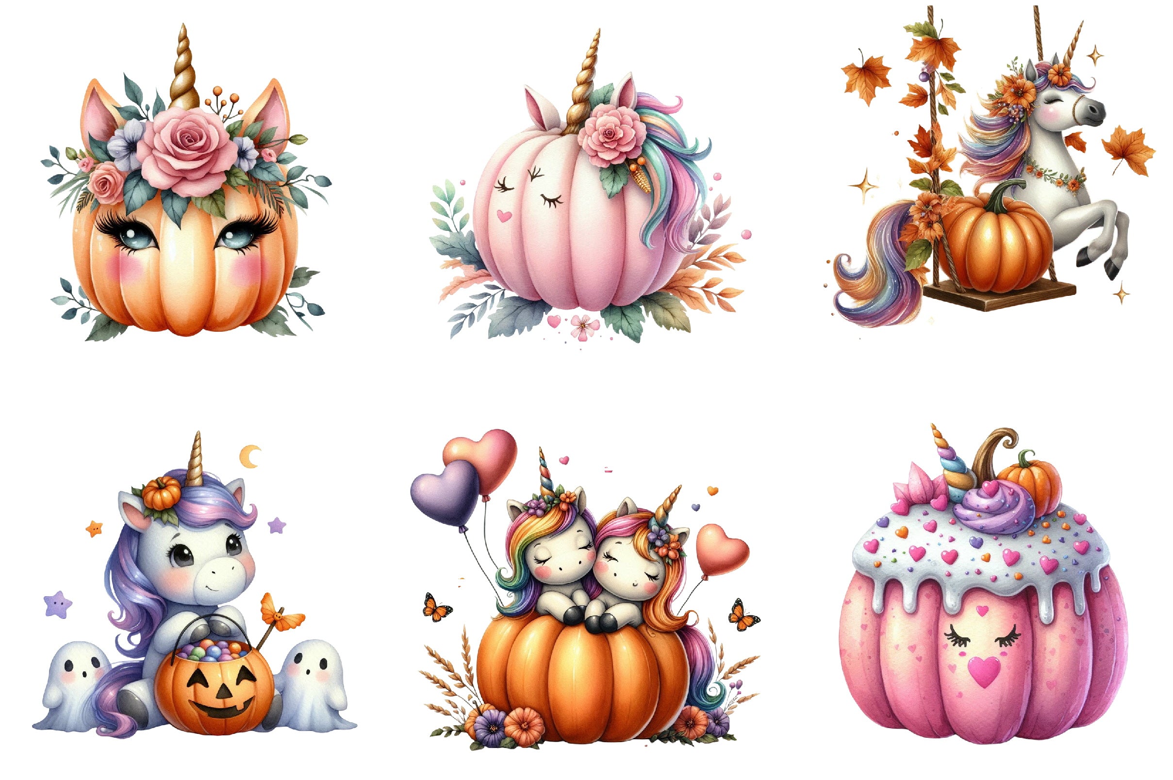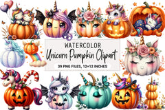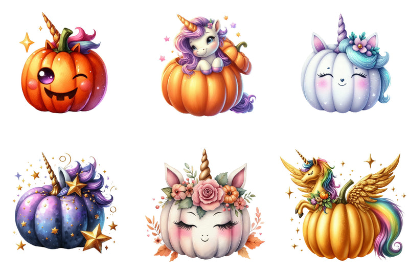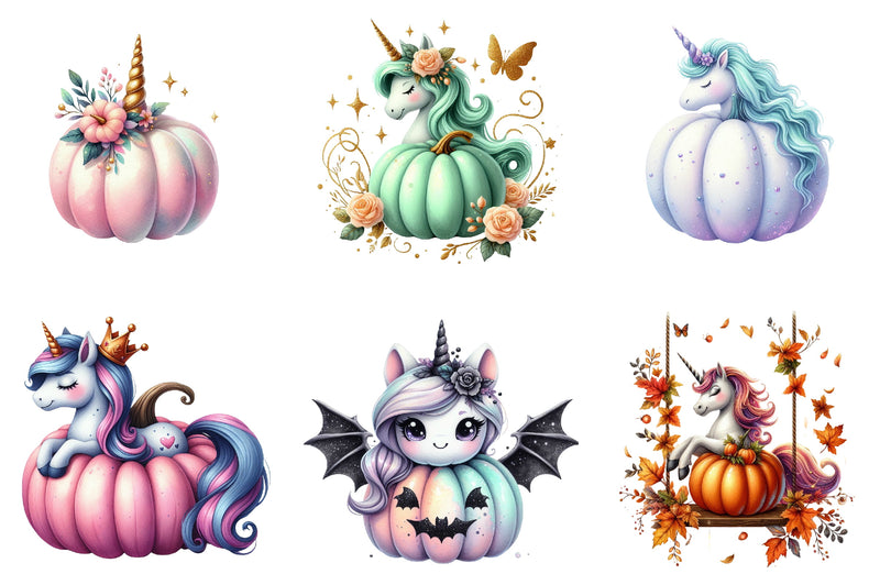 Unicorn Pumpkin Clipart Bundle