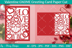 Delight in the charm of the Valentine Gnome Greeting Card Papercut SVG Bundle, featuring whimsical gnome designs perfect for heartfelt crafts and unique Valentine's Day cards.