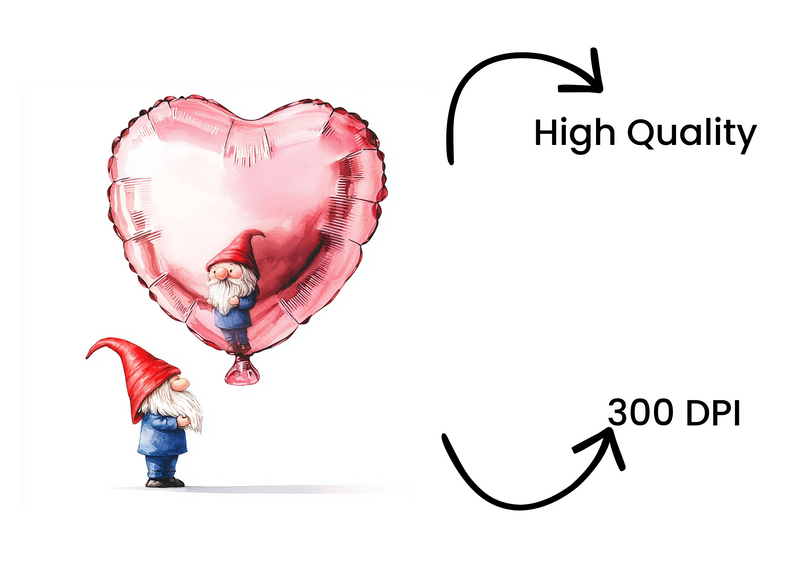 Delight in the charm of our Valentine Gnomes with Heart Balloons Clipart Bundle, perfect for adding a whimsical touch to your romantic projects. These adorable gnome illustrations, holding heart-shaped balloons, are ideal for creating enchanting Valentine's Day cards, scrapbooking, and digital crafts. Elevate your designs with this unique collection, capturing the essence of love and joy.