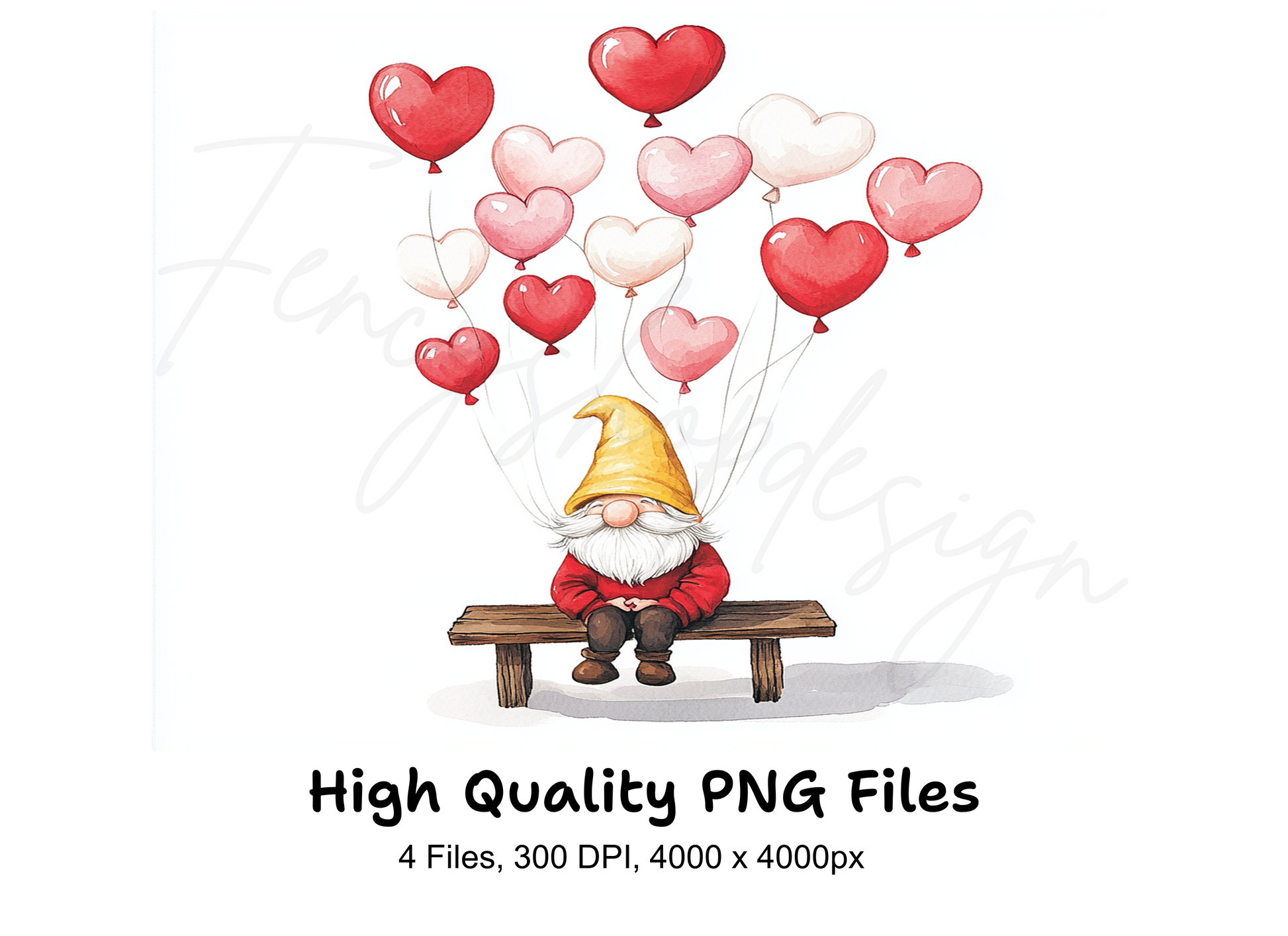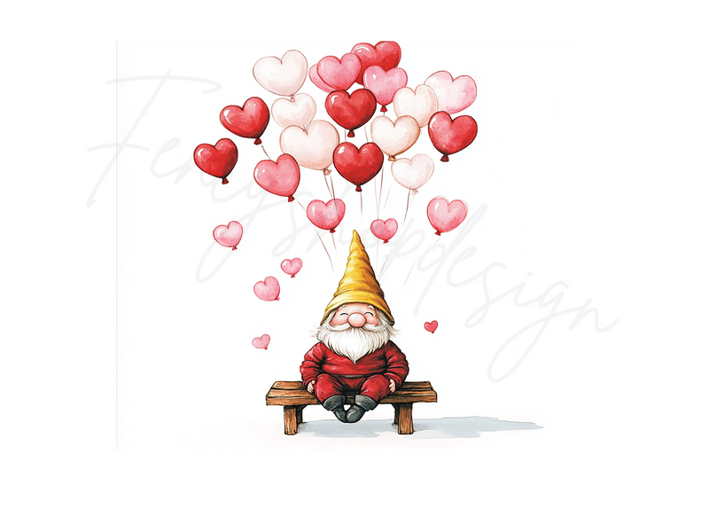 Valentine Gnomes with Heart Balloons Clipart Bundle