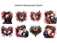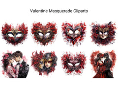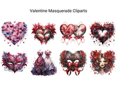 Step into a world of mystery and romance with digital clip art featuring enchanting masquerade illustrations for Valentine's Day. From elegant masks to elaborate costumes, these captivating images evoke the allure and intrigue of a masquerade ball, perfect for adding a touch of elegance to your celebrations. Let the mystique of Valentine Masquerade inspire your imagination, inviting viewers to embrace the magic and splendor of love's grand masquerade.