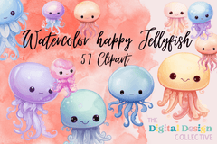Enhance your creative projects with the Happy Jellyfish Clipart Collection Bundle, featuring vibrant and whimsical jellyfish designs, perfect for ocean-themed crafts and digital artwork.