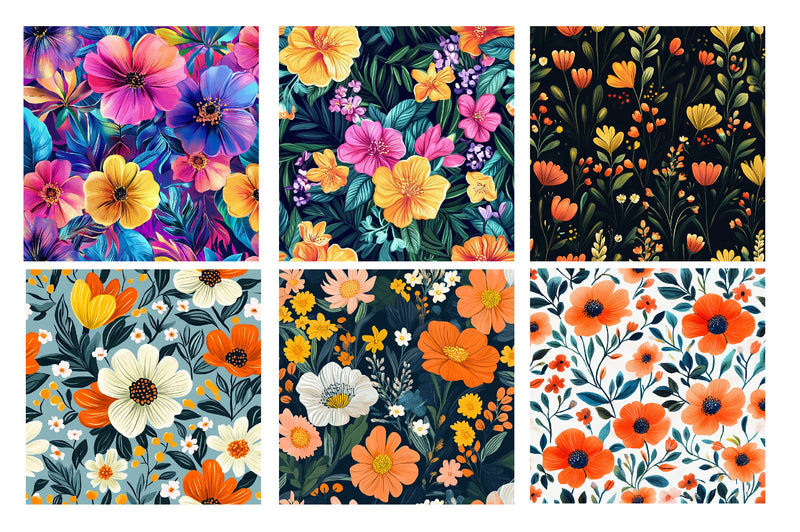 Vibrant Spring Floral Seamless Patterns Digital Paper