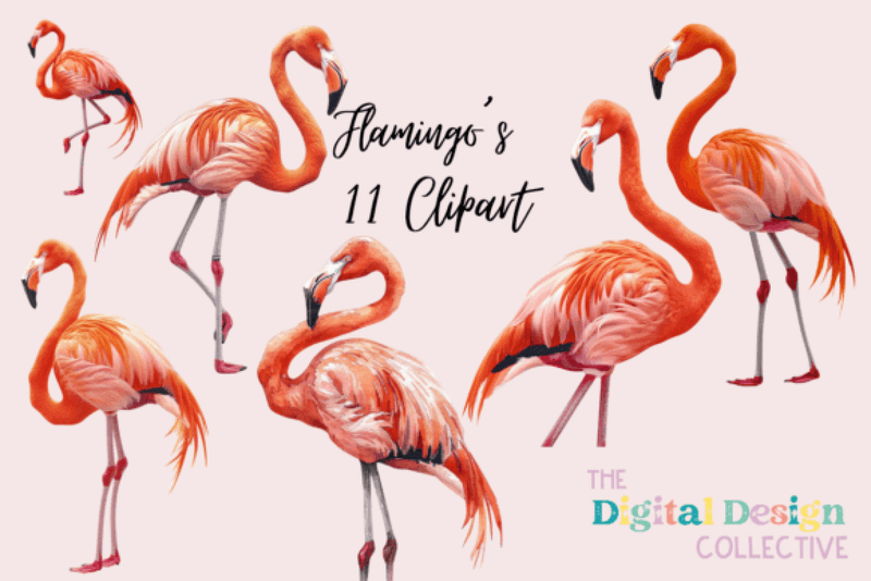 Enhance your creative projects with the Vibrant Tropical Flamingo Clipart Bundle, featuring stunning flamingo designs perfect for tropical-themed crafts, invitations, and decor.