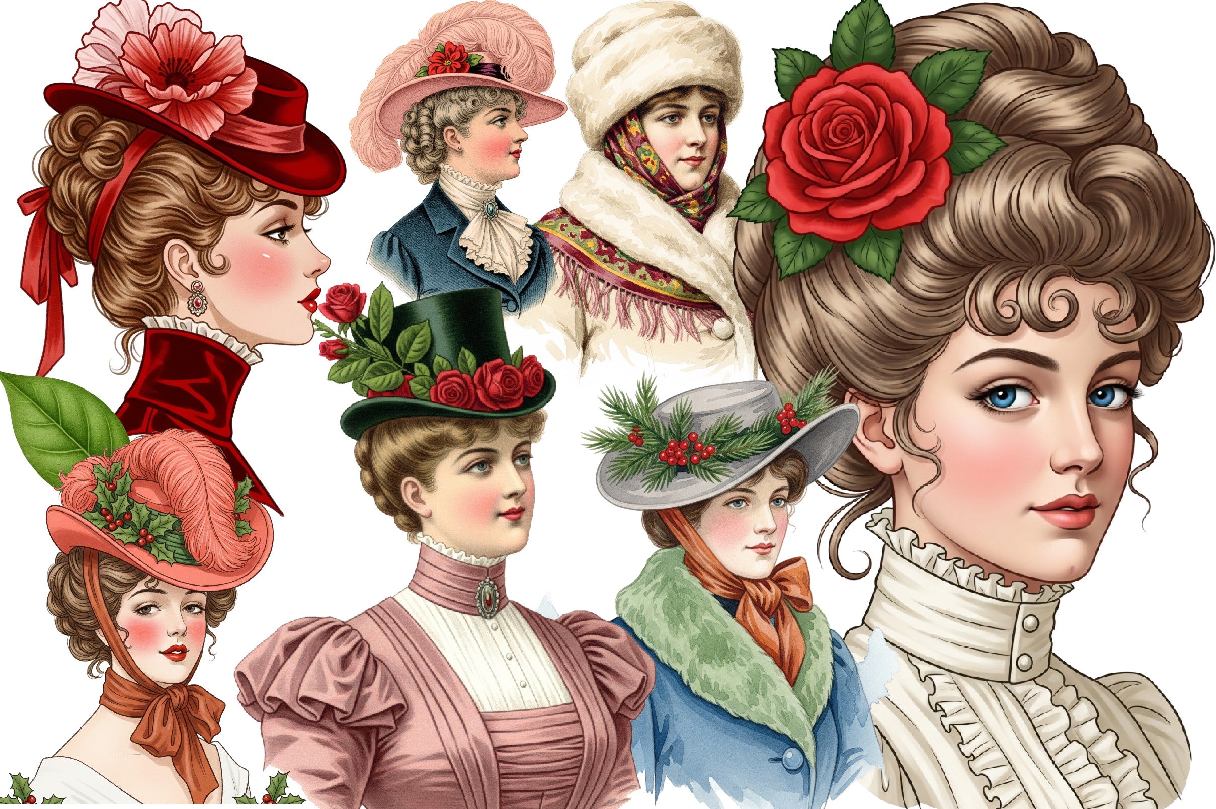 Transform your seasonal creations with this charming collection of Victorian Christmas Ladies, ideal for cards, scrapbooking, and more.