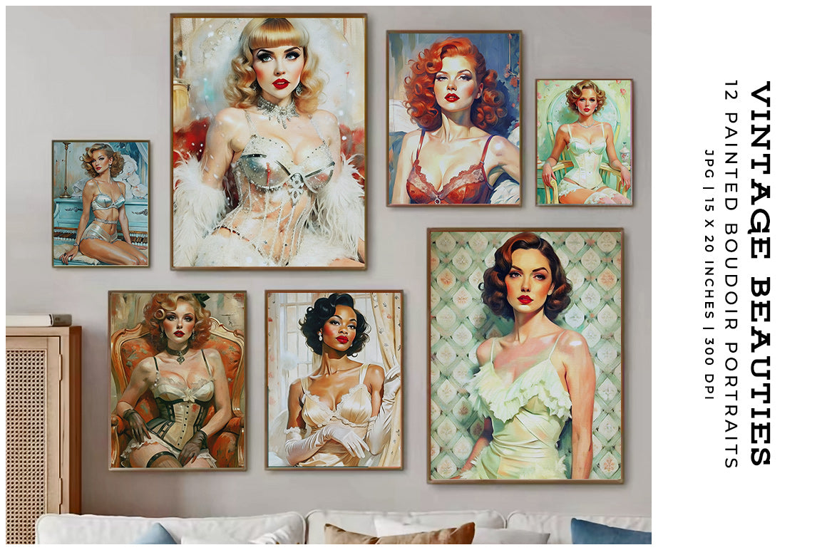 Discover timeless elegance with Vintage Beauties - Women, a captivating collection of classic female portraits, perfect for adding a touch of nostalgia to your home decor or art projects.
