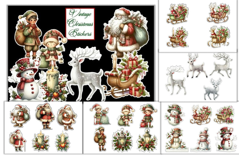 Vintage Christmas Stickers Clipart Bundle