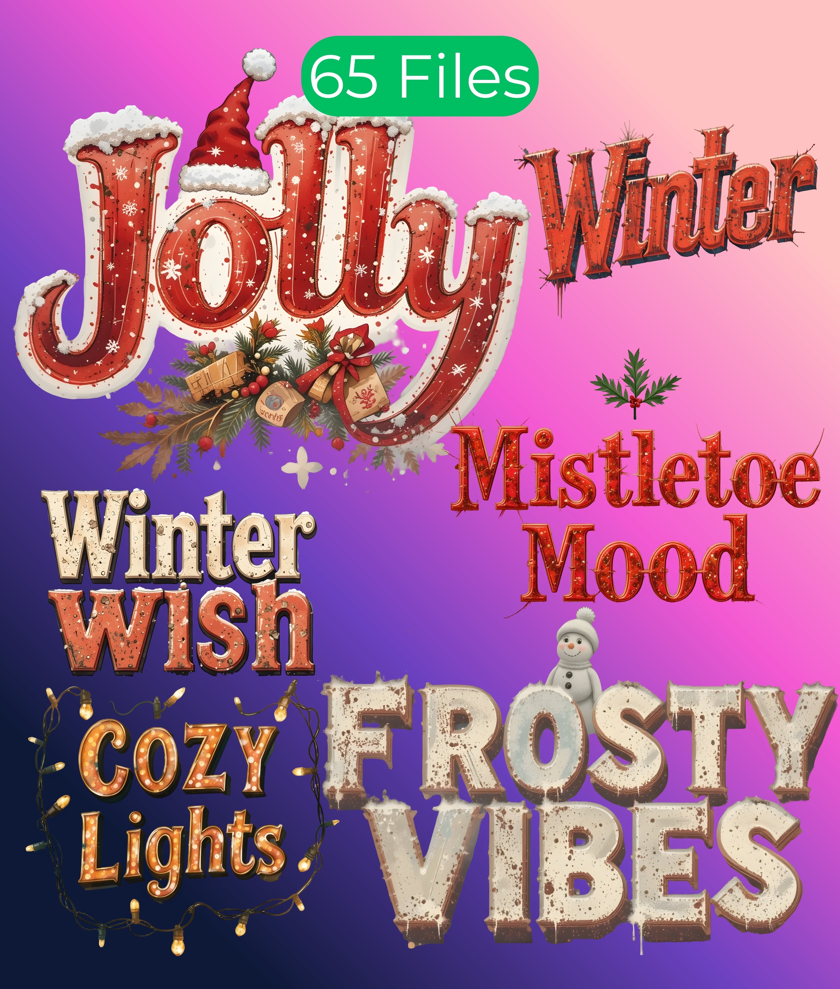 Transform your holiday projects with our Vintage Christmas Texts Clipart Bundle, featuring timeless festive designs perfect for cards, invitations, and crafts. Capture the spirit of the season with classic typography and nostalgic charm, ideal for creating memorable holiday decor and gifts. Elevate your creative projects with this versatile collection, designed to add a touch of vintage elegance to any Christmas theme. Perfect for DIY enthusiasts and professional designers alike, this bundle offers endless possibilities for festive creativity.